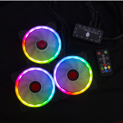 Bộ quạt tản nhiệt RGB rainbown 16 triệu màu Bộ sản phầm kèm điểu khiển thay đổi hiệu ứng LED Fan case Tomato sử dụng LED vòng - có 2 vòng led trên 1 fan ( dual ring) Tốc độ gió lớn (1100-1800rpm). Độ ồn thấp